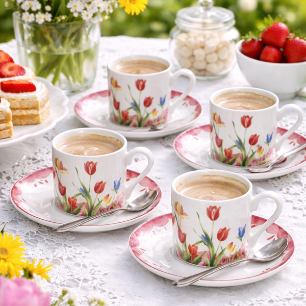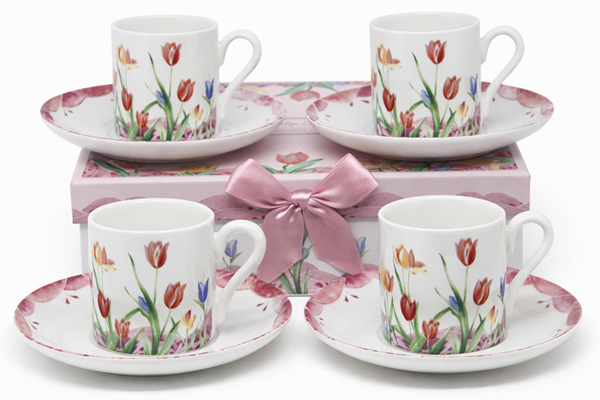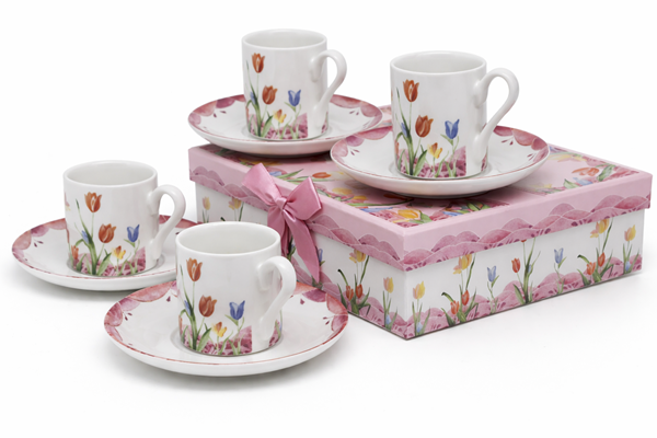 KPL. 4 FILIŻANKI Z PODSTAWKAMI BOX-12